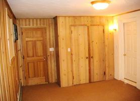 Wood paneled walls add to the beauty of this main floor bedroom.